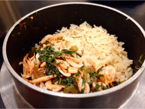桜海老と蕗の釜飯。桜海老の香りがやばすぎました。磯の香り全開です。