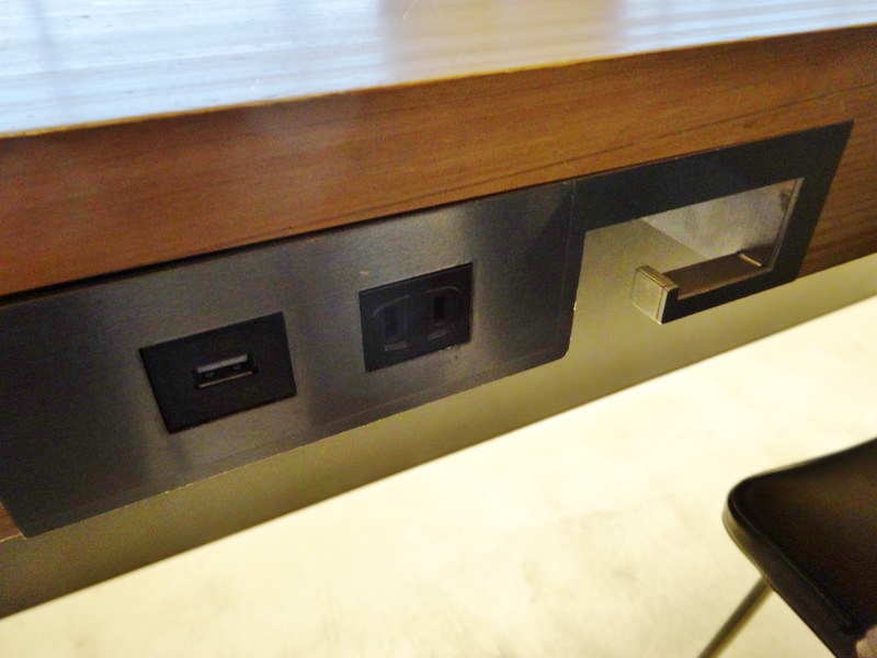 また、電源コンセントは各席に完備されています。通常の電源のほかにUSBポートからも供給できるのはうれしいですよね。スマホやタブレットなどの充電に役立ちます。