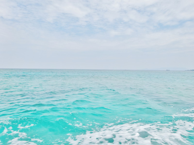 リザンビーチを出発し、そしていよいよ沖合いでのシュノーケル開始。上記の写真はシュノーケリングポイントに着く少し手前で撮影したものです。なので実際はもう少し沖合いになります。