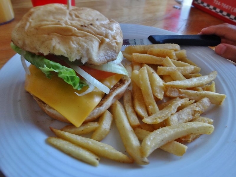 グアムで大きな巨大ハンバーガーが食べたいならロンズダイナーを全力でおすすめします。ちょっと郊外にあるので、行くにはレンタカーが必須だけど、借りた場合はマストで行って欲しい場所です。