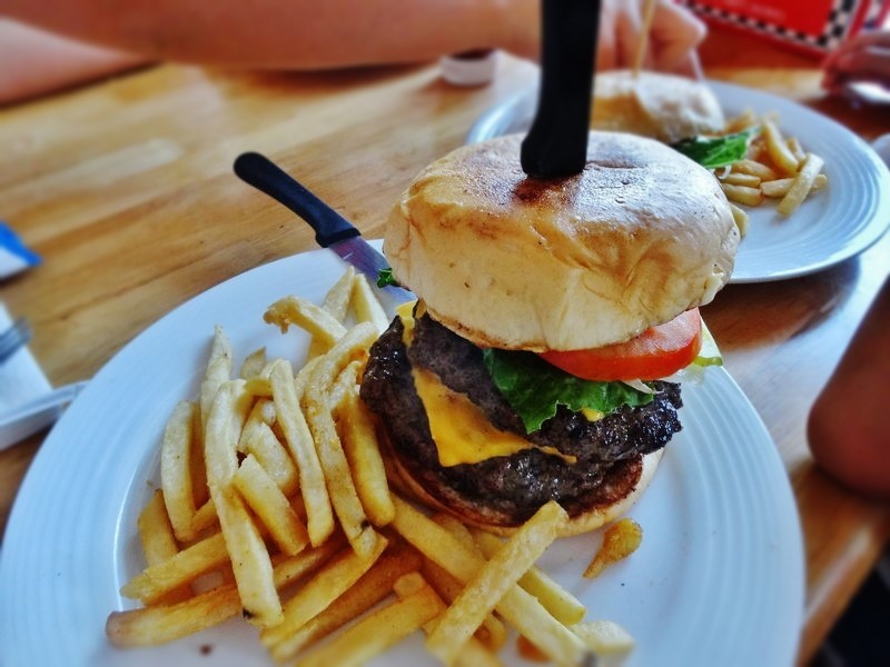 地元の人にも大人気のお店で巨大な名物ハンバーガーが食べられるよ!