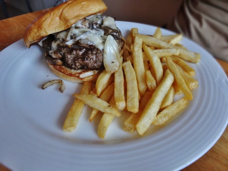 ロンスターバーガーがあの大きさだったので、こちらはどうかと思いましたが、結構普通の大きさでした。マッシュルームソースのオニオンバーガーですね。