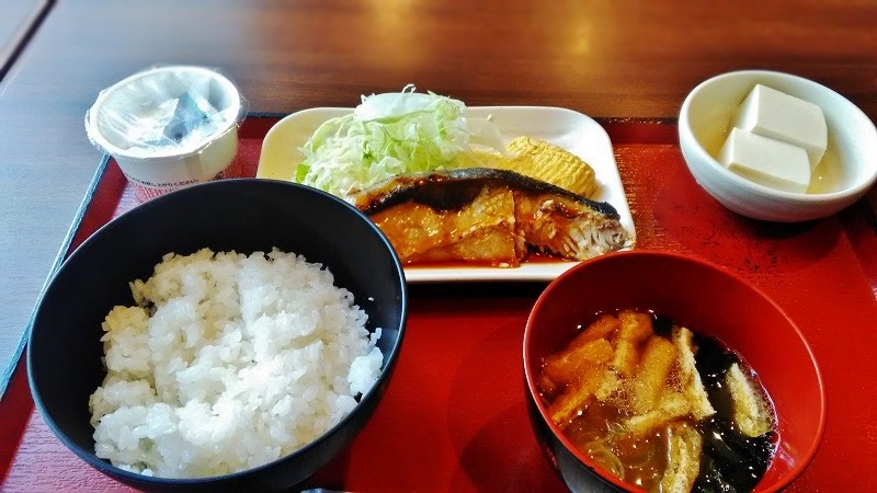 朝食は1階のレストランで頂きます。おかずは定食になっていて、ごはんと味噌汁(お替り自由)を自分で取るシステムになっています。バイキング形式ではありませんが、非常においしく、これぞ朝ごはんといった感じですね。