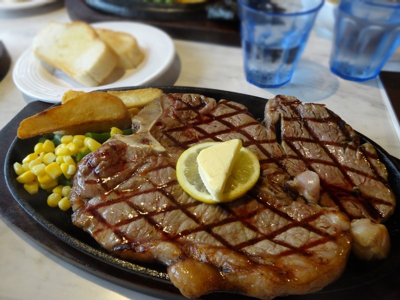 で、やっぱりいただいちゃいましたよ!Tボーンステーキ!焼き方はミディアムがおすすめだそうで、そのままお願いしました。