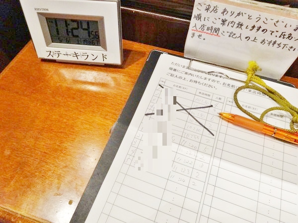 通常並ぶ場合は、店の前にある紙に名前を記載して待つことになります。