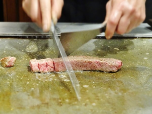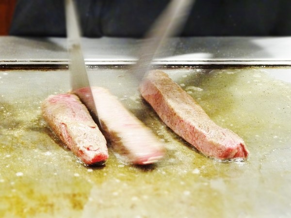 - シェフが対面で焼いてくれる鉄板焼き(雰囲気あります!)