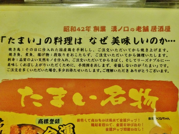 サクッと飲んで帰るもよし、ジックリと料理を頂くのも良し。居酒屋激戦区の溝の口にあってレベルの違いを見せ付ける「たまい本店」でした!