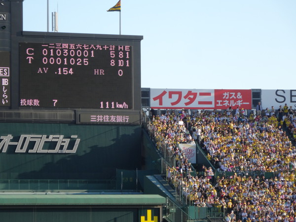 でもさすが阪神ですね。ほかの球場とは違った威圧感と言うか雰囲気があります。球場の空気一つで試合の流れを変えてしまったかんじです。こりゃ凄いわ!