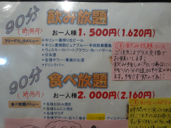 これだけが90分間食べ放題です。お好み焼き「とどろき亭スペシャル」でも1枚1000円するので、2枚以上食べる場合は食べ放題がお得になりますよ。