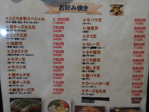 とどろき亭はお好み焼き・もんじゃともにメニューも豊富。