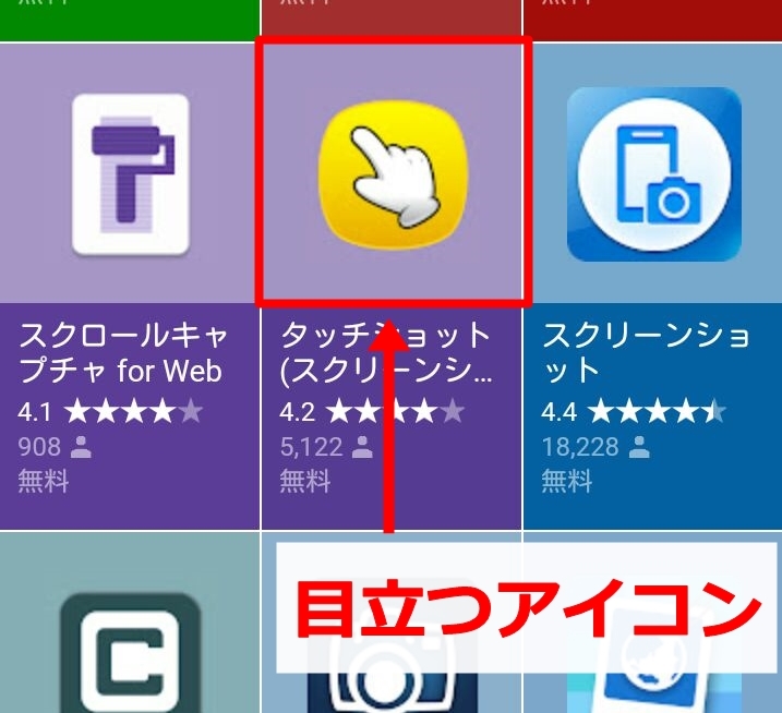 GooglePlayよりアプリを無料でダウンロードしましょう。「タッチショット」と検索すれば一発です。特徴的な可愛らしい「指のアイコン」なのですぐ分かると思います。