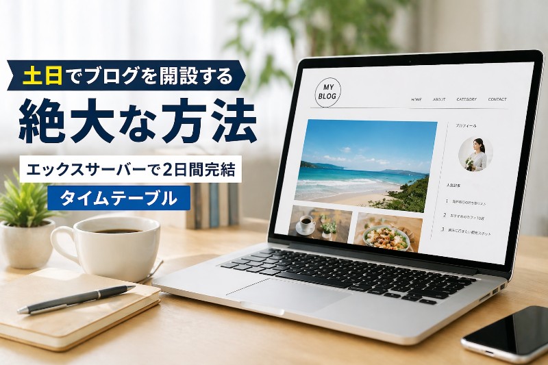 エックスサーバーのWordPressクイックスタートがあれば、環境構築で丸1日が消えることはありません。土日合計6〜9時間で、記事が1本公開された状態のブログが完成します。